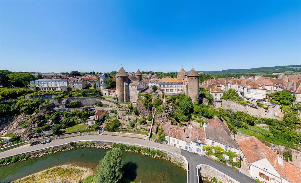 Nichée sur les hauteurs, Sermur-en-Auxois dévoile depuis le ciel un décor digne d’un tableau. Les prises de vue 360° mettent en valeur les remparts, les toits en tuiles brunes et les champs qui s’étendent à perte de vue. Le drone capture la lumière matinale qui caresse les pierres anciennes, offrant aux visiteurs une immersion totale dans l’histoire médiévale de la Bourgogne.