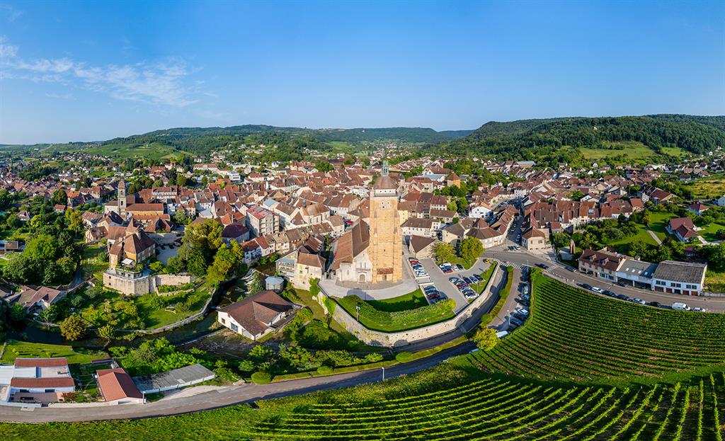 Célèbre pour ses vins et sa gastronomie, Arbois se dévoile en toute majesté vu du ciel. Le reportage photo drone 360° met en relief les parcelles de vignes parfaitement alignées, la rivière Cuisance qui serpente au cœur de la ville et les toits colorés du centre historique. Cette perspective aérienne permet de comprendre toute la richesse viticole et culturelle de ce joyau du Jura bourguignon.