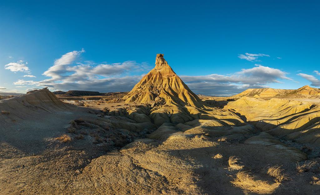 À deux heures de route, changement total de décor : bienvenue dans le désert de Las Bardenas Reales. Ici, le paysage semble tout droit sorti d’un western — formations rocheuses, plateaux arides et silence absolu. Nos photos 360° ont capturé l’immensité de ce lieu presque surnaturel. Le coucher du soleil transforme la roche en une palette d’or et de rouge spectaculaire.